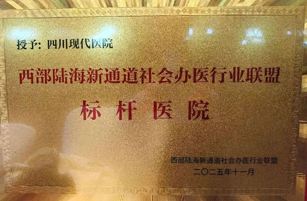 四川现代医院受邀参会,并凭借在医疗服务、技术创新、行业引领等方面的优秀表现,成功斩获西部陆海新通道社会办医行业联盟 “标杆医院” 荣誉授牌。