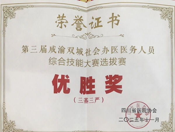 近日,第三届成渝双城社会办医医务人员综合技能大赛-四川选拔赛圆满落幕!四川现代医院选派精锐队伍参赛,凭借扎实的专业功底、娴熟的实操技能和默契的团队协作,在众多参赛队伍中脱颖而出,一举斩获多项重量级奖项,为医院赢得了荣誉!此次大赛汇聚了成渝双城社会办医领域的众多精英团队,竞赛内容涵盖“三基三严”、急诊急救、健康科普等多个核心领域,全方位考验医务人员的专业素养和实战能力。