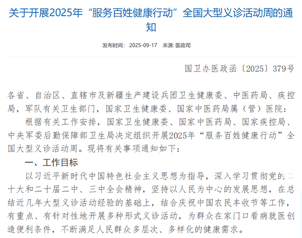 四川现代医院积极响应国家卫生健康委、国家中医药局、国家疾控局、中央军委后勤保障部卫生局联合发起的 2025 年“服务百姓健康行动”全国大型义诊活动周的号召,于 9 月 22 日至 28 日开展了为期一周的健康义诊活动。
