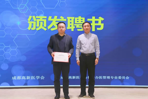 成都高新医学会副会长兼秘书长曾斌出席成立大会并为大会致辞,他首先对大会的召开表示热烈的祝贺,并指出这次大会对于推动社会办医管理工作的重要意义。同时,他期待未来成都高新医学会社会办医管理专业委员会能够在景爱平主任委员的带领下,为社会办医管理搭建一个相互交流的平台,发挥各方资源优势,共同推进社会办医管理事业的发展,提供更好的医疗服务和保障。随后,曾斌副会长兼秘书长为当选的主任委员、候任主任委员颁发证书。当选主委景爱平为副主委、特聘专家颁发证书。