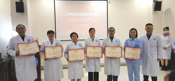 大会对2023年度表现突出的先进集体进行现场表彰,将会场气氛推向了新高潮。院领导为各获奖科室的医护人员颁发奖项,为他们的辛勤工作和专业贡献给予了高度的肯定。会场洋溢着喜悦和自豪,彰显了医务人员的责任与担当。