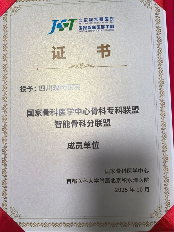 此次入选国家级智能骨科联盟,为我院骨科发展提供了更高层次的协作平台。四川现代医院将依托联盟建立的区域协作网络,为提升区域骨科整体服务水平贡献力量。