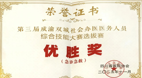 近日,第三届成渝双城社会办医医务人员综合技能大赛-四川选拔赛圆满落幕!四川现代医院选派精锐队伍参赛,凭借扎实的专业功底、娴熟的实操技能和默契的团队协作,在众多参赛队伍中脱颖而出,一举斩获多项重量级奖项,为医院赢得了荣誉!此次大赛汇聚了成渝双城社会办医领域的众多精英团队,竞赛内容涵盖“三基三严”、急诊急救、健康科普等多个核心领域,全方位考验医务人员的专业素养和实战能力。