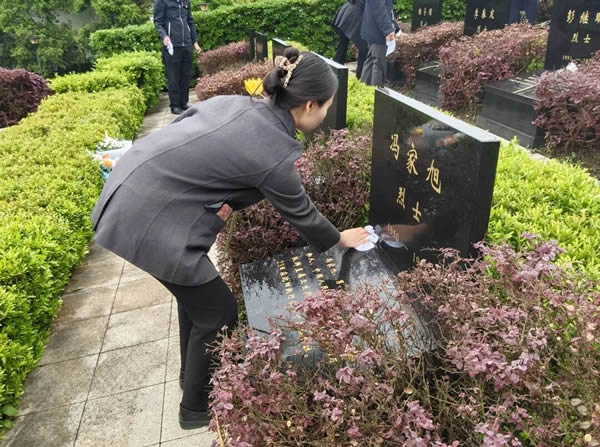 仪式结束后,在工作人员的引导下,大家有序瞻仰烈士墓区,认真聆听英烈事迹。四川现代医院的代表们还参与了为烈士墓碑擦拭灰尘、清扫周边环境的行动,以实际行动表达对英烈的尊崇与追思。